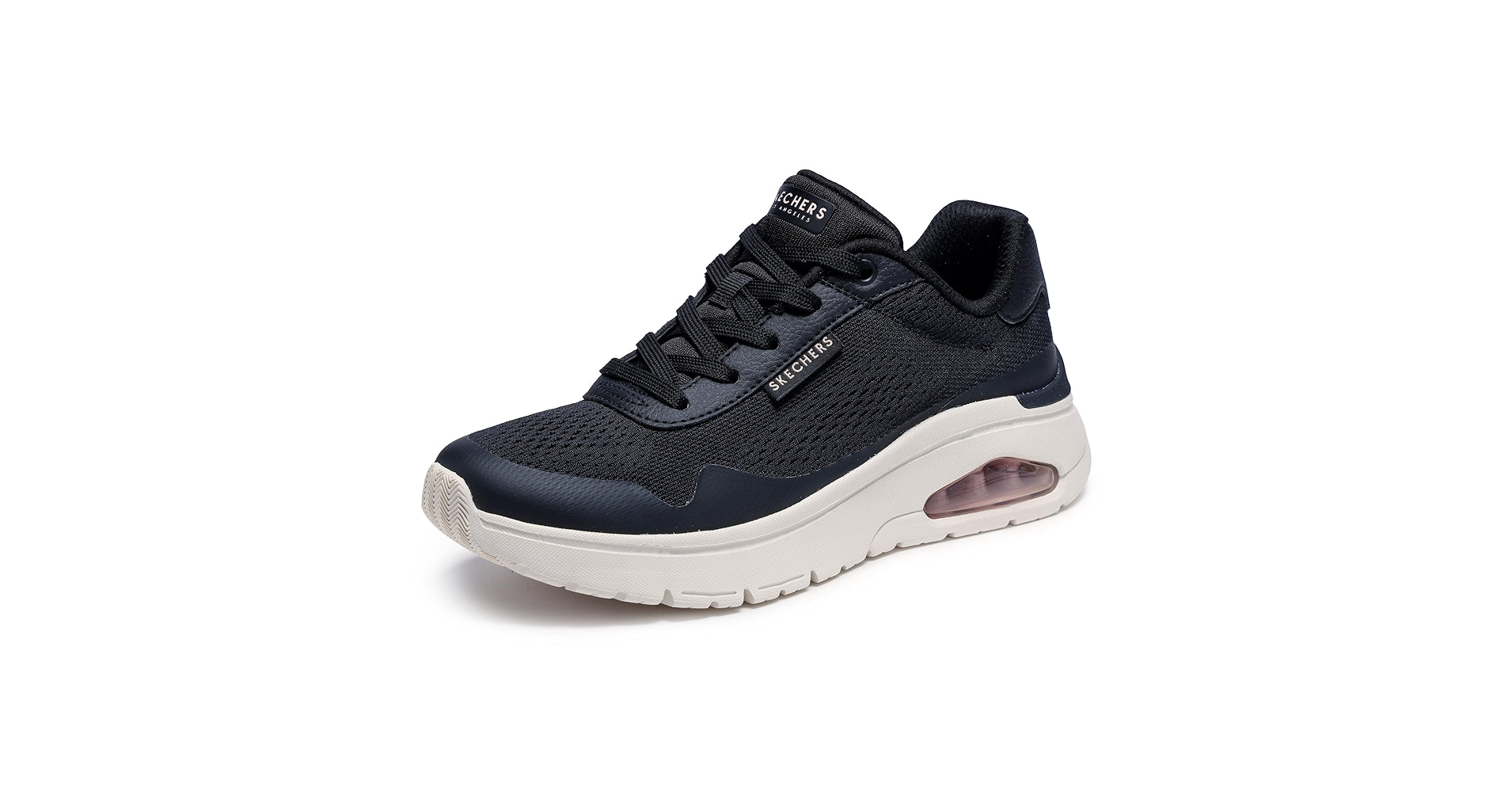 UNO Flex - EZ Air Slip-ins. Designed with our Heel Pillow®, this slip-on fashion sneaker features a mesh and hotmelt overlay upper with fixed stretch laces, a Skechers Memory Foam™ insole, and a Skech-Air® visible airbag midsole.